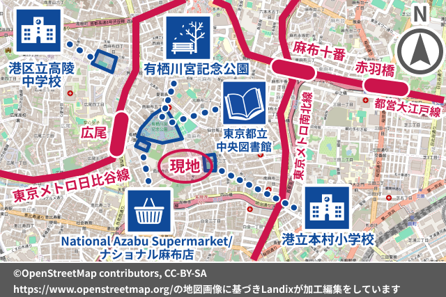 東京メトロ日比谷線 広尾駅 徒歩10分 東京メトロ南北線 麻布十番駅 徒歩15分 都営大江戸線 麻布十番駅 徒歩15分 |