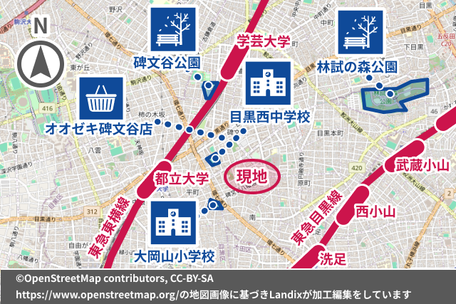 東急東横線 都立大学駅 徒歩13分 東急目黒線 大岡山駅 徒歩15分 東急大井町線 大岡山駅 徒歩15分 |