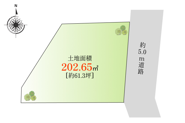 ●前面道路幅5m、60坪超のゆとりをこの地で手に入れる