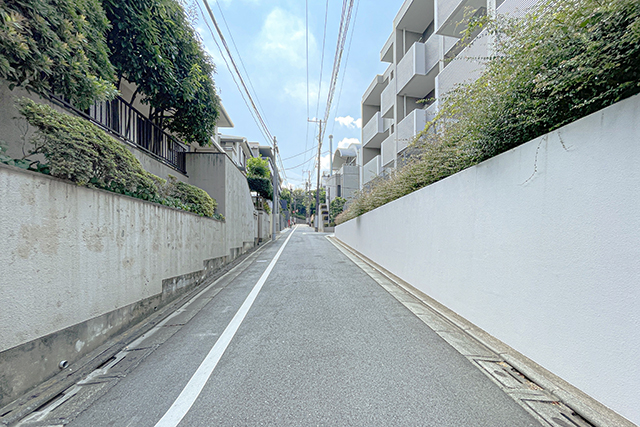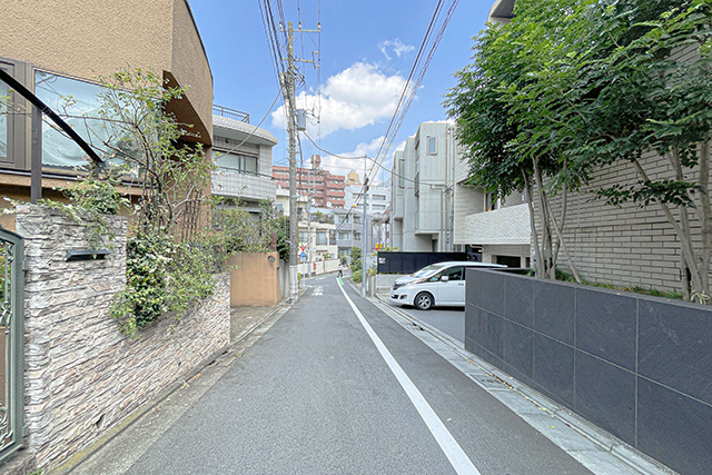 駅前のにぎわいから数分歩くだけで閑静な住宅街へと景色が変わるのも中目黒ならでは。本物件は第一種住居専用地域内にあり、落ち着いた街並みに包まれています。東南側道路に接道しているため採光条件も良好で、住まいの設計に活かしやすい敷地です。