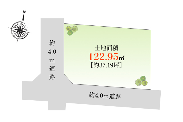 南側約4.0m、西側約4.0m |
