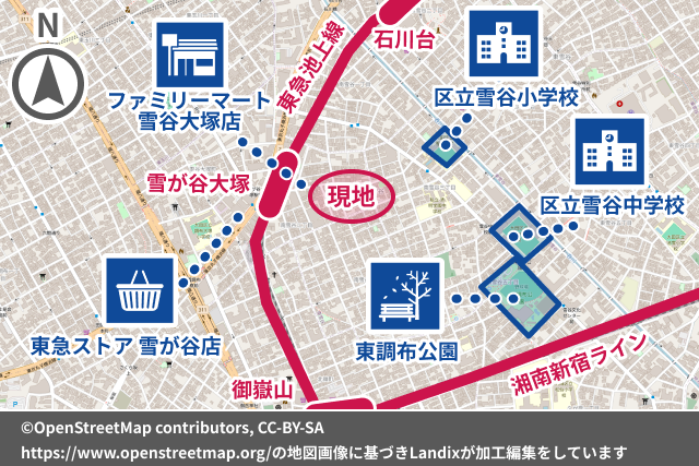 東急池上線 雪が谷大塚駅 徒歩4分 東急池上線 石川台駅 徒歩11分 東急池上線 御嶽山駅 徒歩12分 |