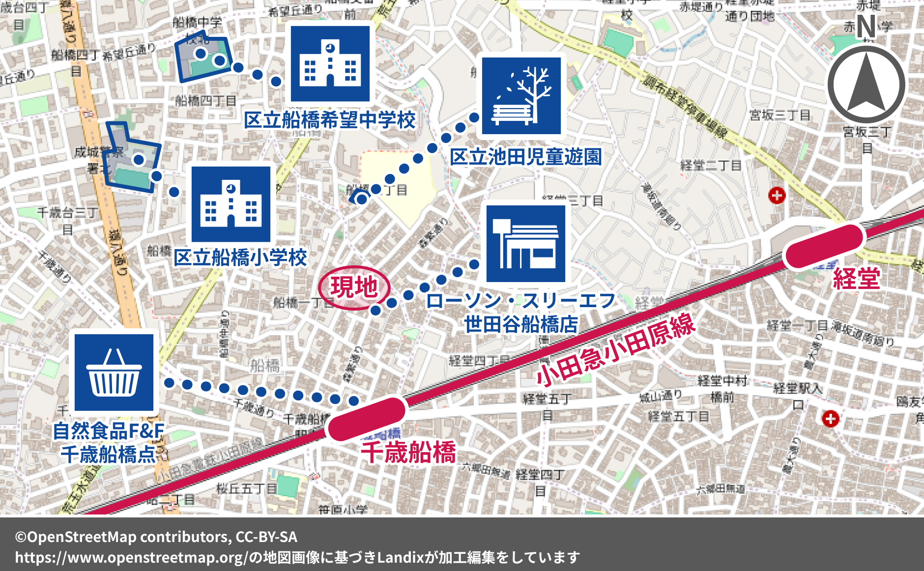小田急線 千歳船橋駅 徒歩5分 |