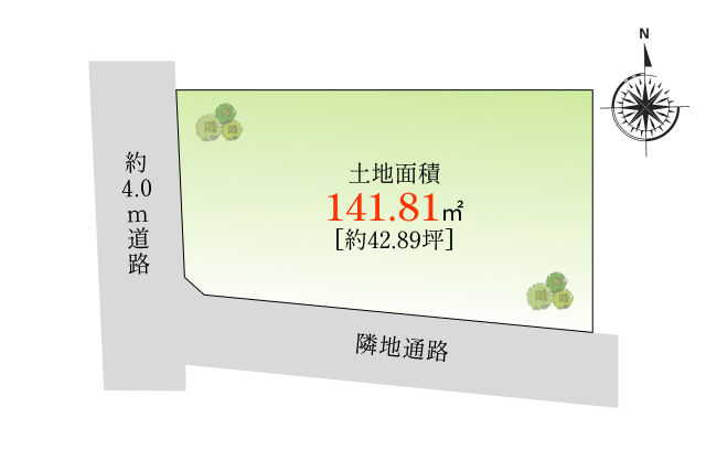 西側約4.0m、南側約3.5m通路 |