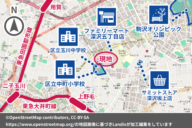東急大井町線 上野毛駅 徒歩15分 東急大井町線 等々力駅 徒歩17分 東急田園都市線 用賀駅 徒歩19分 |