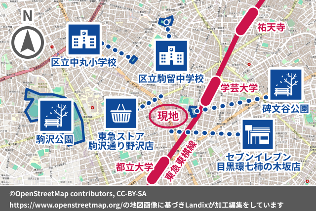 東急東横線 学芸大学駅 徒歩12分 東急東横線 都立大学駅 徒歩16分 |