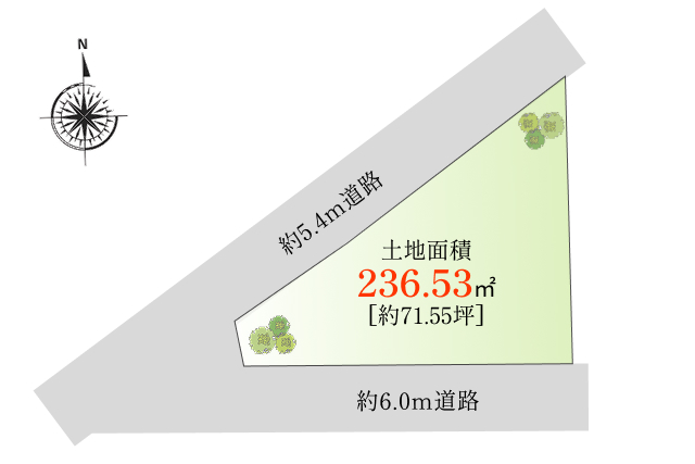 南側約6.0m、北西側約5.4m |