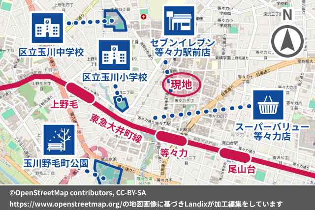 本物件は、東急大井町線「等々力」駅から徒歩6分の立地。通勤・通学や買い物、週末のお出かけまで、都心へのアクセスと生活利便性をバランスよく兼ね備えたエリアです。