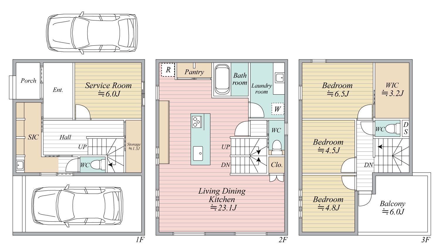 ■4SLDKや2台駐車プラン検討可、片側9m間口の角地でゆとりある邸宅を実現