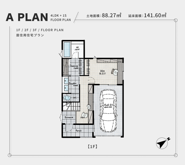 代官山という一等地において、延床面積141.60㎡(4SLDK)という広さを誇る私邸を持つことは、まさに実業家の証と言えます 。マンションでは得られない「独立性」と、3層構造を活かした「機能的な空間分離」がこの邸宅の真骨頂です 。単なる住居としてだけでなく、都心の最前線で戦うビジネスリーダーのための拠点としてのポテンシャルを最大限に引き出した参考プランを詳しく解説します 。