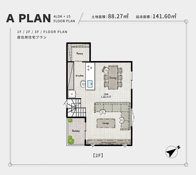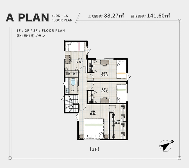 3.参考プランの紹介: 140㎡超、3層が織りなす職住一体の住処