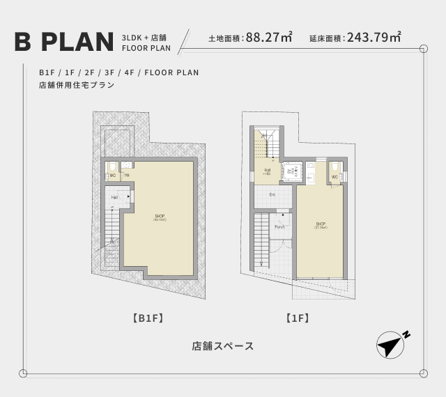 店舗部分:69.92㎡(1階:27.74㎡ B1:42.18㎡)