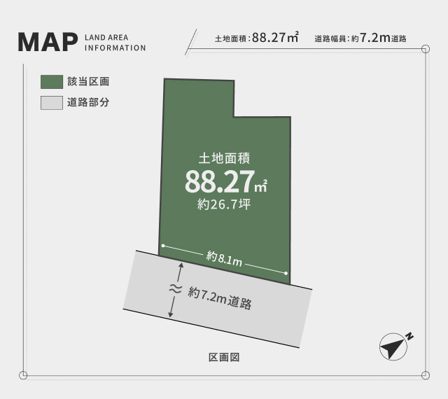 2.該当区画の紹介: 資産を形づくる「前面道路7.1m」と「間口8.1m」
