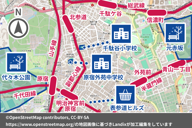 東京メトロ副都心線 北参道駅 徒歩9分 JR山手線 原宿駅 徒歩12分 |