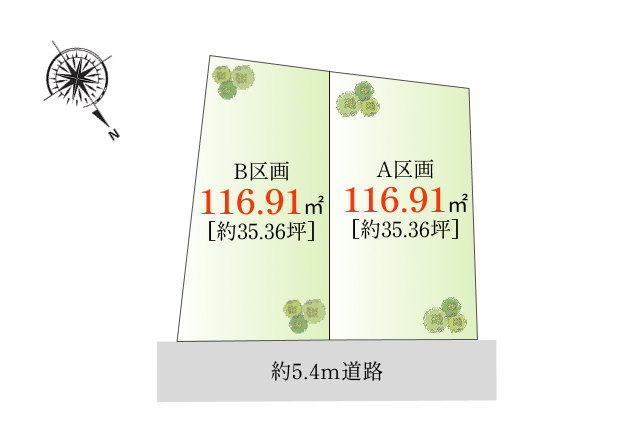 A区画: 116.91㎡ (35.36坪)、B区画: 116.91㎡ (35.36坪) |