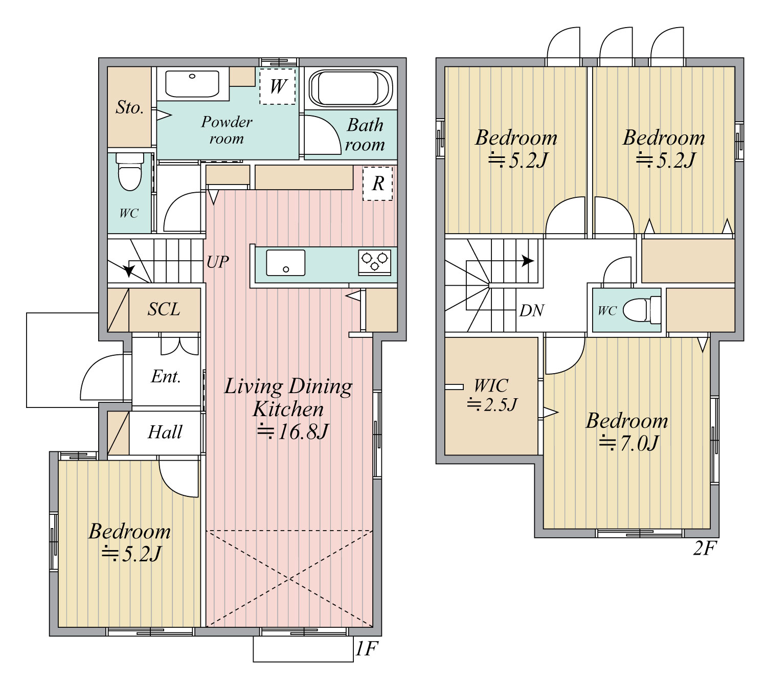 そんな和泉の第一種低層住居専用地域にあるのが本物件。低層の戸建てが整然と並ぶ閑静な住宅街にあり、ゆとりある敷地を活かして、例えばファミリー向けの4LDKプランはいかがでしょう。1階には約16帖のLDKを設置し玄関からスムーズにアクセスできる生活動線が実現します。また、居室を1部屋設置。2階には7帖の主寝室と5帖の子供部屋を2つ配置。個室を2階に集約することでプライベートな空間を確保できます。
